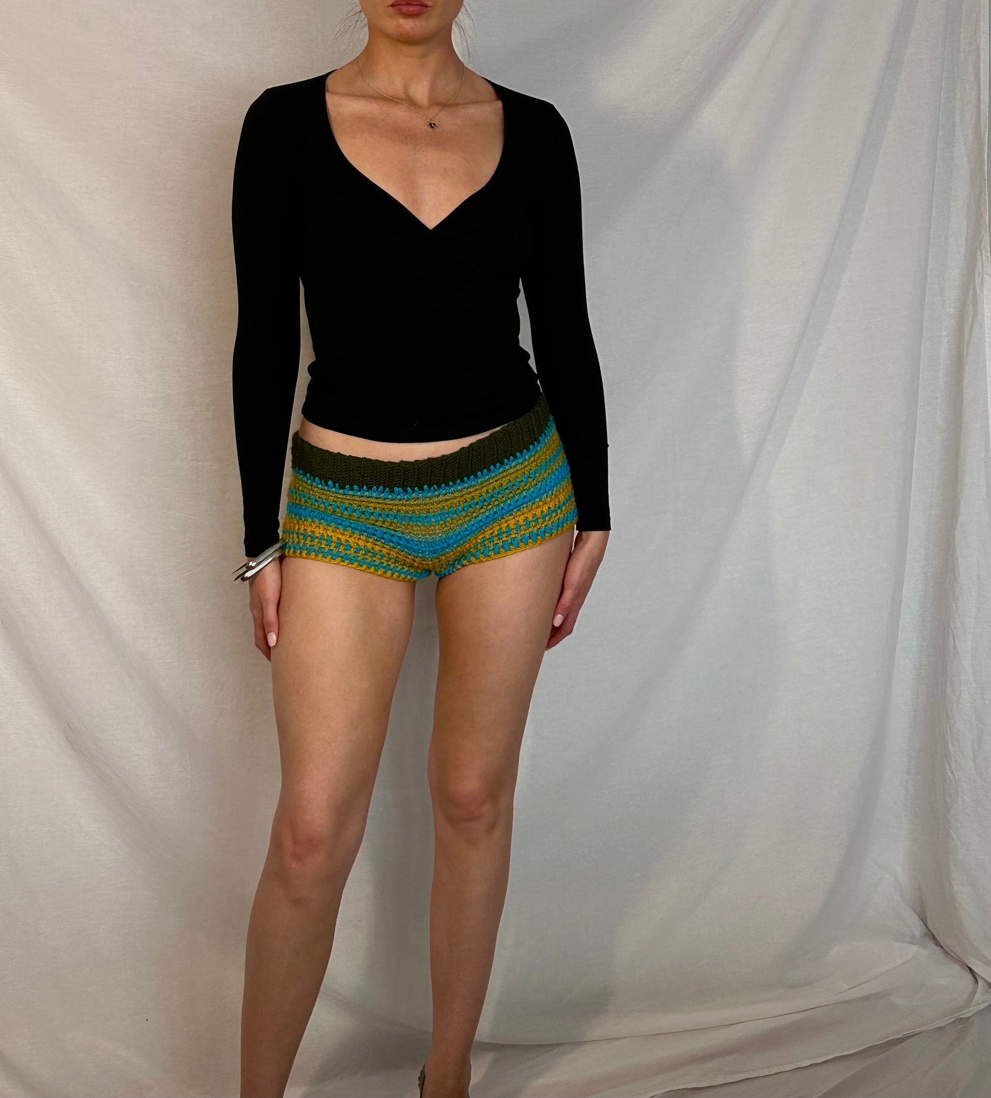 Hand Crochet booty shorts with scrunch bum detail.