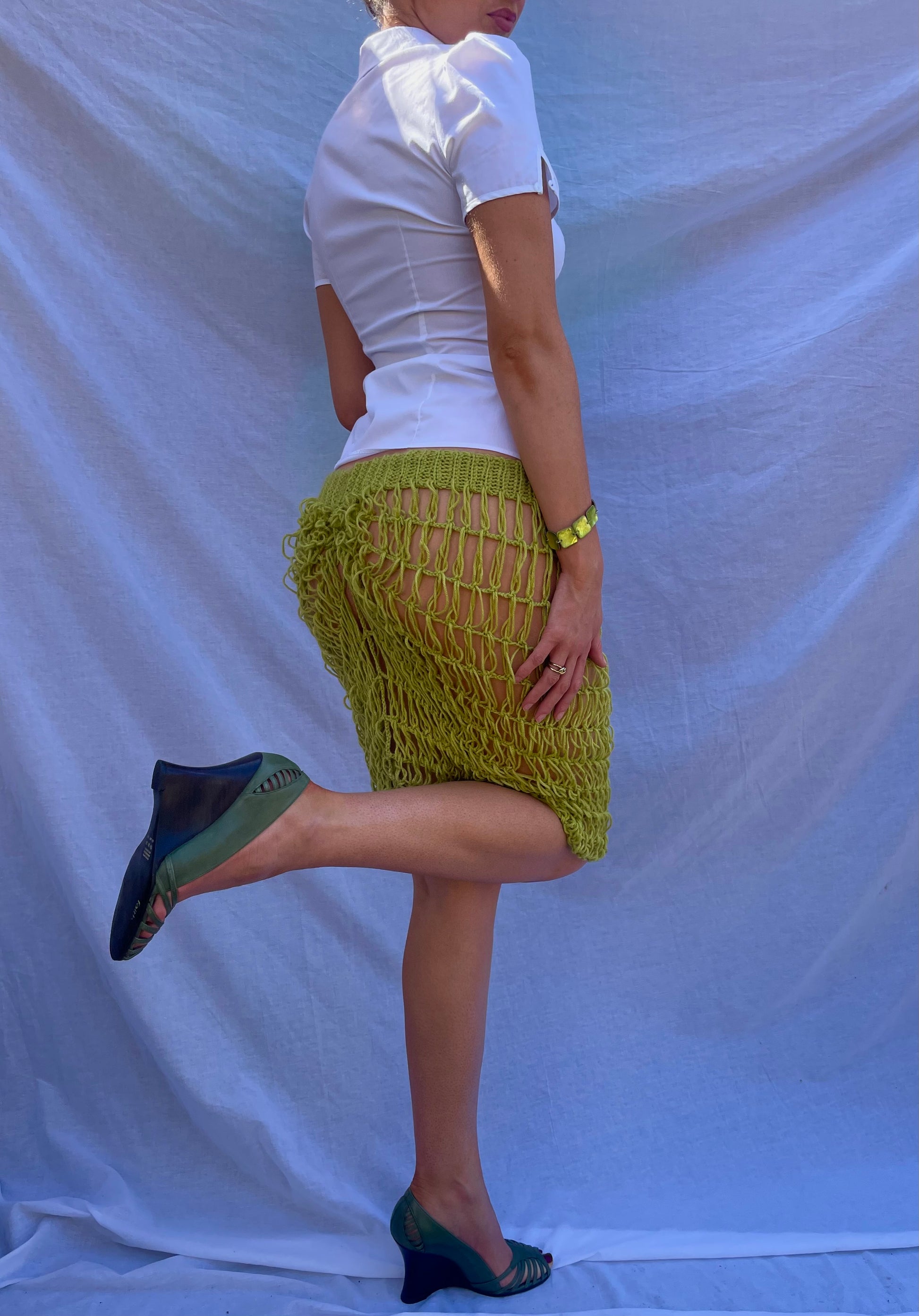 Hand-crocheted skirt featuring a subtle scrunch detail at the back. Crafted from soft yarn with natural stretch, designed to sit comfortably on the hips. A refined statement for warm-weather wear. Each piece is handmade to order.